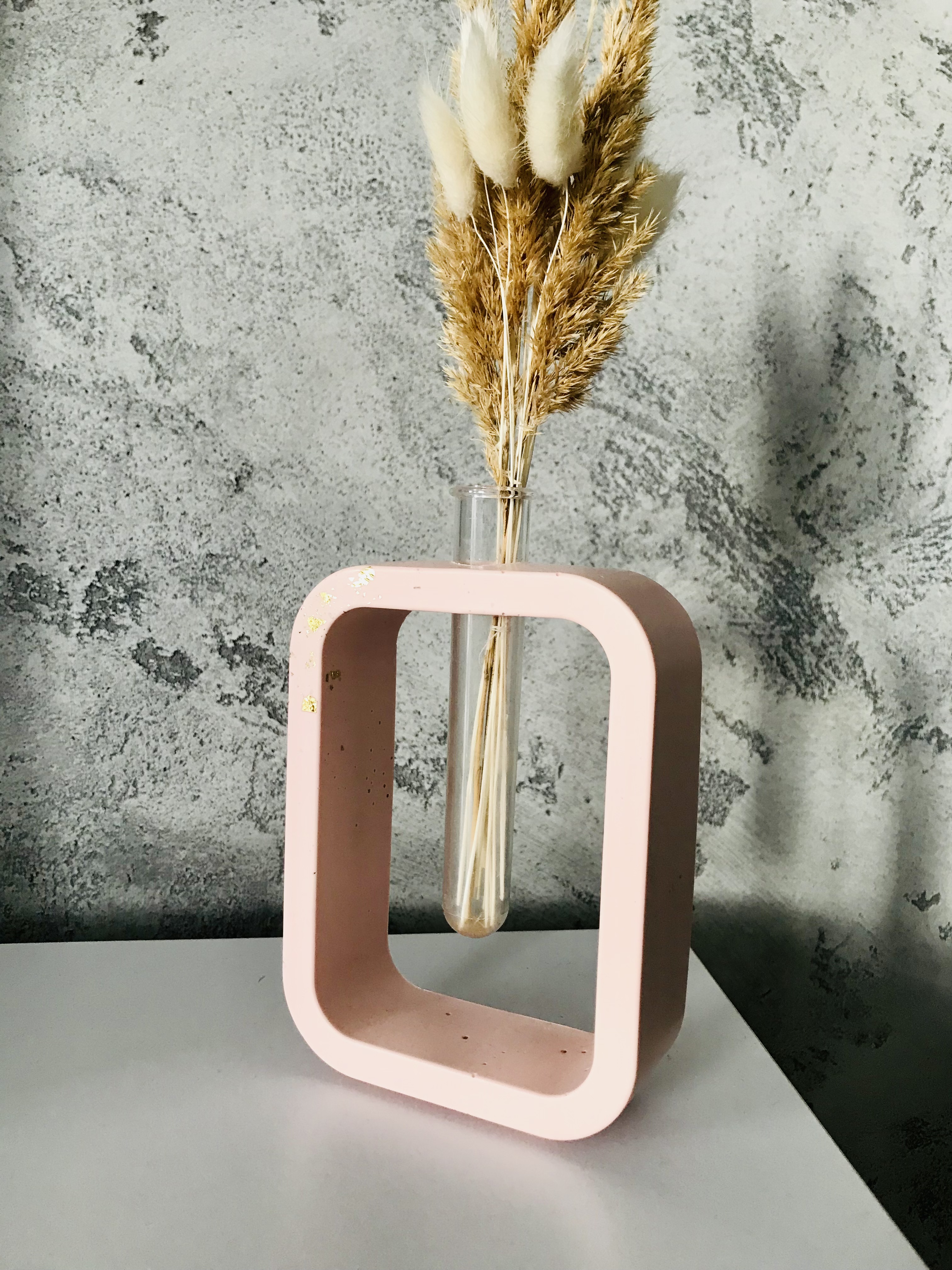 Váza je pudrově růžové barvy a zdobená zlatými plátky, což jí dodává šmrnc a originalitu. Je navíc vybavena zkumavkou, která pojme až jednu květinu, takže můžete vystavit svou oblíbenou rostlinu s elegancí.